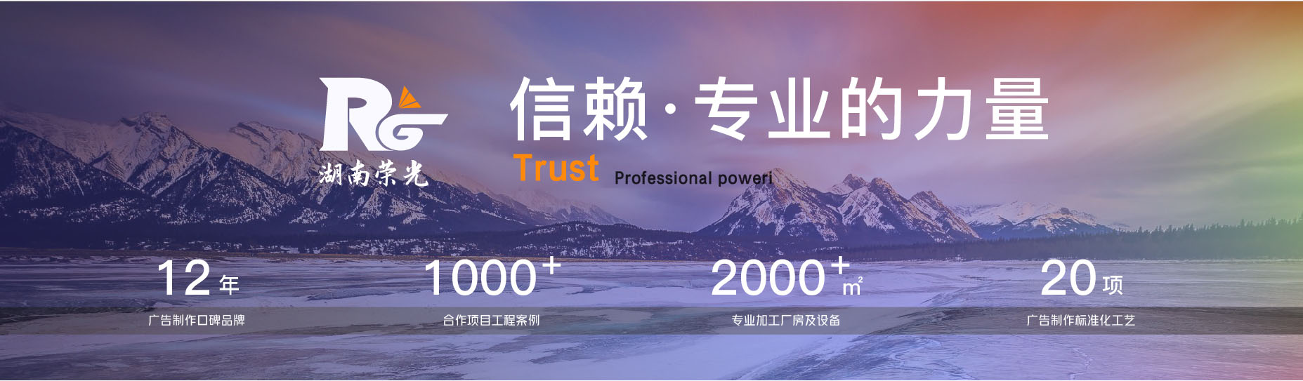 湖南榮光公司是一家總部位于長沙的廣告公司,公司現有管理團隊技術骨干20余人,擁有專業的安裝隊伍及售前售后團隊、資深的文化墻設計、黨建文化設計和廣告標識設計團隊,F有廣告標識及發光字加工生產廠房2200平米,150平米標準化烤漆加工房。全自動發光字折彎機、雕刻機、激光切割機、平板UV設備等十余臺。同時具有強大的LED顯示屏供應鏈、為您企業的廣告投入,實現創新和快速反應,提供了有力保障。
